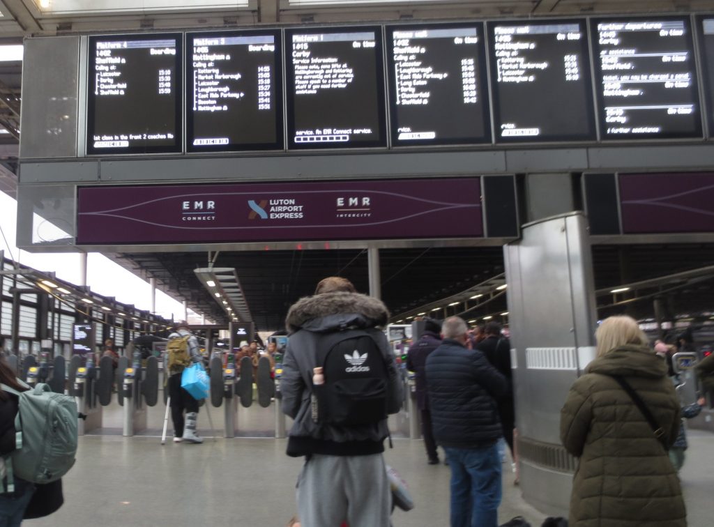 EMRの路線には、レスターやダービー、ノッティンガム、シェフィールドといった中都市が並んでいます。フライトなどと違い、街への移動が楽なのが列車を利用するメリットです。