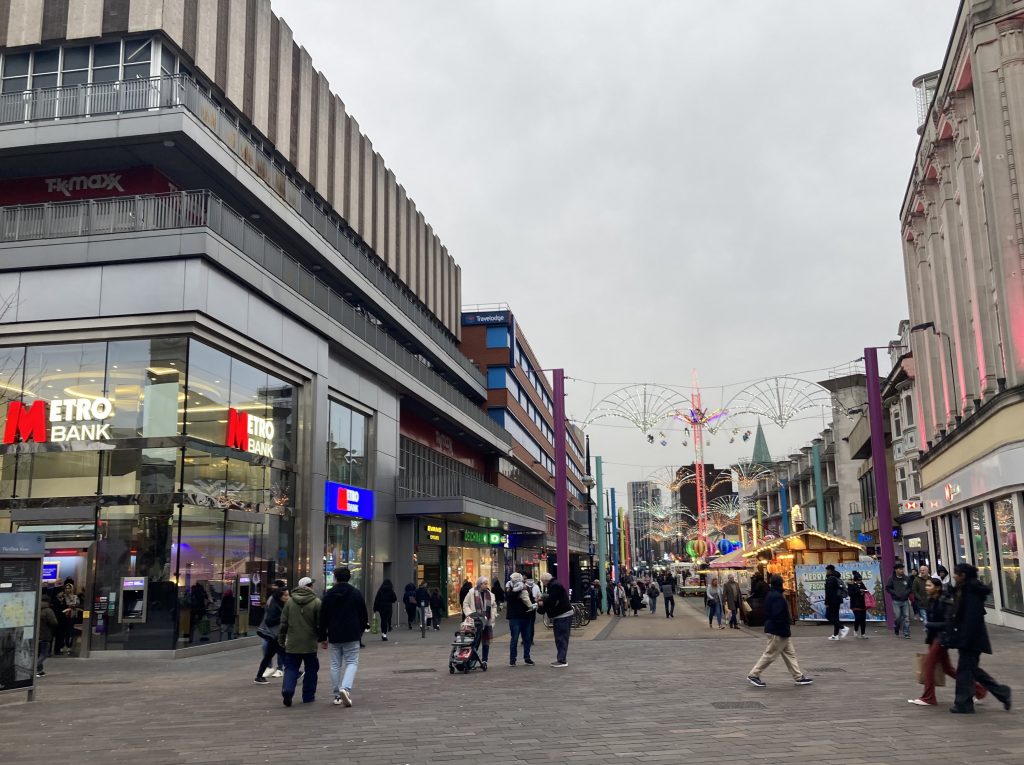ダービーの中心街もモールになっていてなかなかにぎやかで華やかです。こうしたカーフリーの街の中心地があることがヨーロッパの各都市の魅力ですね。