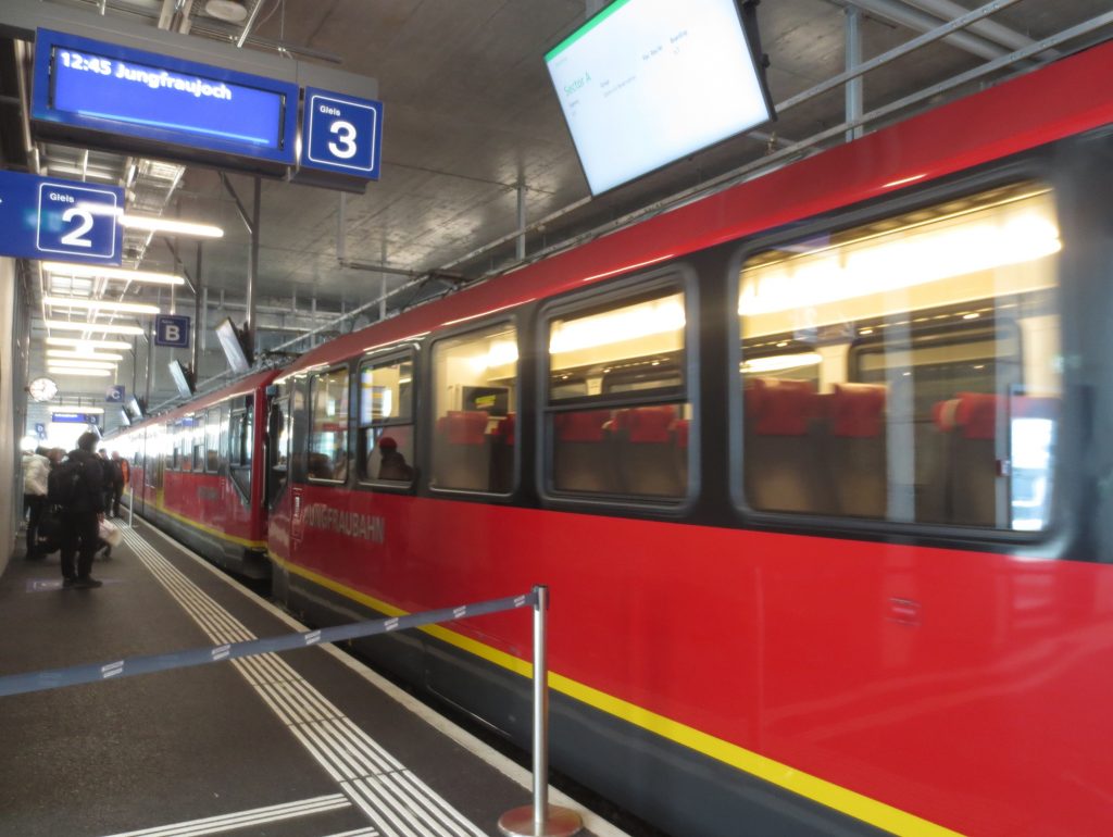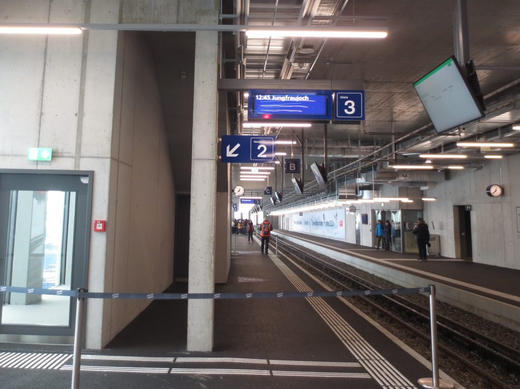 ユングフラウヨッホの乗車口も同様です。こうしたゲートがあって予約がチェックされます。なおアイガーグレッチャー方面とクライネシャイデック方面は乗車口が別になります。